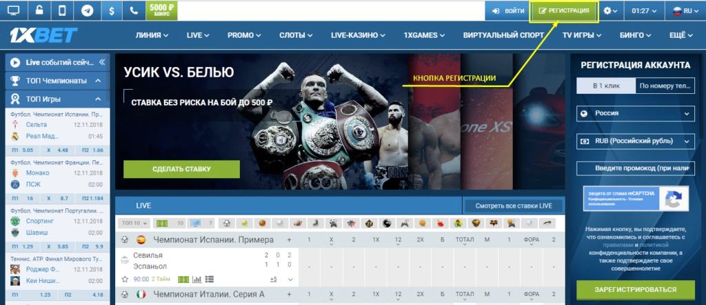 Без регистрации не получится стать клиентом БК. Регистрация на сайте 1хбет – простая процедура, которая занимает не очень много времени. Все, что нужно – кликнуть на соответствующую клавишу (она расположена в правом верхнем углу экрана). Следующий этап – заполнить небольшую анкету.